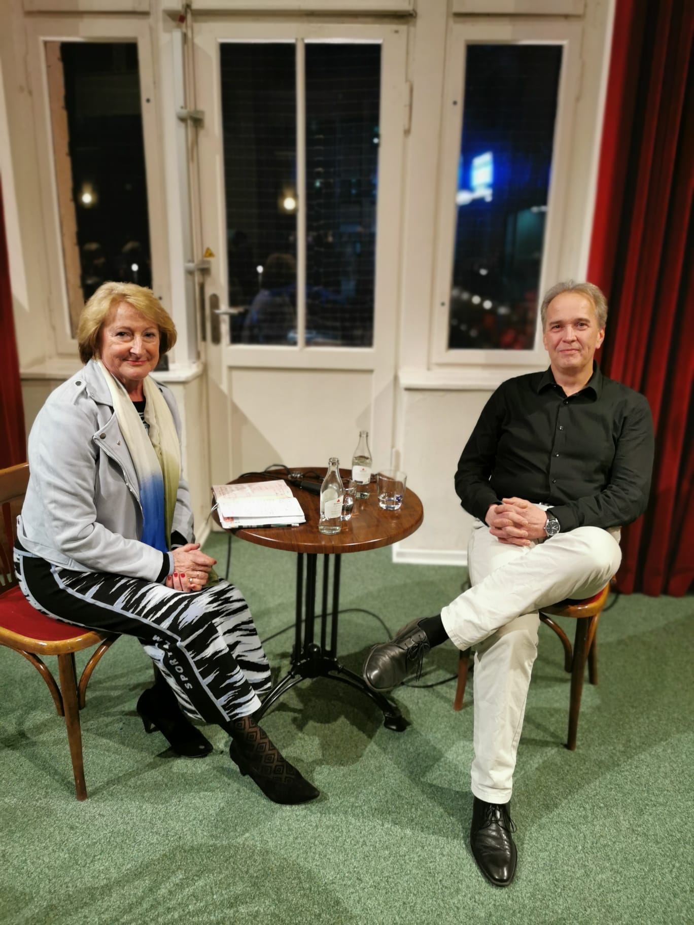 Im Theatercafé wartet schon Richard van Gemert auf uns. Anette König begrüßte ihn und moderierte das Gespräch. Die zentrale Frage, wie man Kammersänger wird, führte Richard van Gemert und den TFV eng zusammen. Es braucht einen Fürsprecher für die Ernennung und das war für ihn der TFV. Richard van Gemert erzählte gut gelaunt und sehr lebendig aus seinem Leben, von seiner Familie, von seinen Rollen, von Castingerfahrungen und von der Fachrichtung Spieltenorbuffo. Er hatte viel Spaß daran, immer wieder seine Geschichten und Informationen erfahrbar zu machen,in dem er die angesprochenen Gesangsparteien kurz ansang. 150 Rollen in 27 Jahren im Theater Hagen. Sehr eindrucksvoll. Seine zentrale Botschaft ist der Appell an das lebenslange Lernen, an eine ehrliche,kritische Selbstbeobachtung und Fehlerkultur und damit an ein wahrhaftiges Selbstwertgefühl,das den respektvollen Umgang mit einander einfordert. Diese Einstellung zu sich selbst hat Richard van Gemert zu dieser großartigen Entwicklung geführt,die in der Ernennung zum Kammersänger der Stadt Hagen mündet. Mit einer Anekdote aus einer Liebesszene schloss das Gespräch und zauberte allen Gästen ein Lächeln und Lachen ins Gesicht.